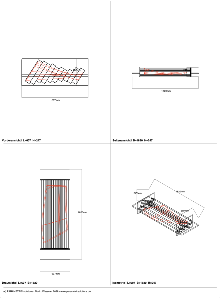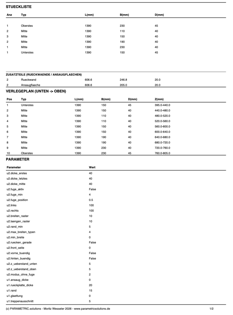 Result: A structured, revision-safe data set comprising CAD exports, bills of materials, reports and visual previews — the foundation for precise, cost-efficient manufacturing.